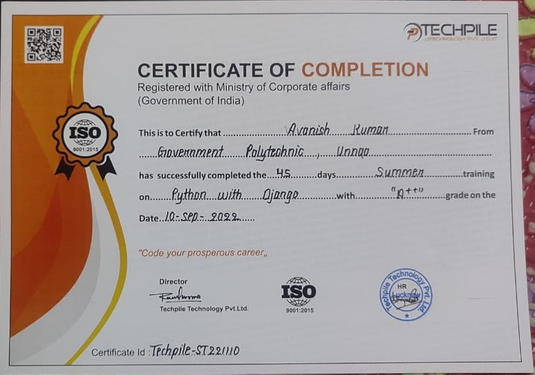Certificates My Achievements & Certificates Welcome to my Certification Showcase!Here you can find all the certificates I have earned during my learning journey: My All Certificates Certificate 1 Certificate 2 Certificate 3 Certificate 4 Certificate 5 Certificate 6 Certificate 7 Certificate 8 Certificate 9 Office Culture & Memories